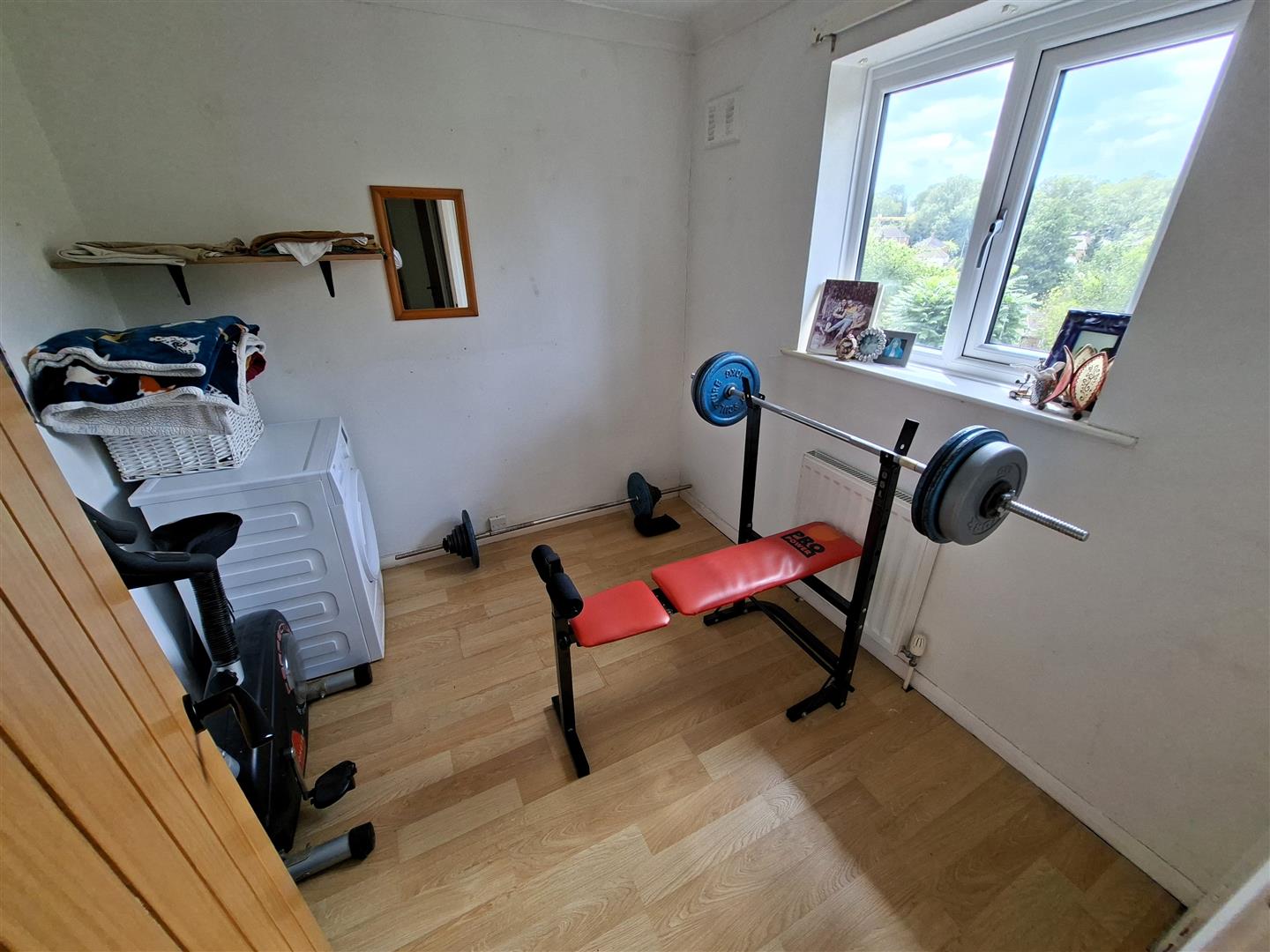 Good size single bedroom with laminate flooring and white walls, window to rear, downlighter, useful built-in storage cupboard.