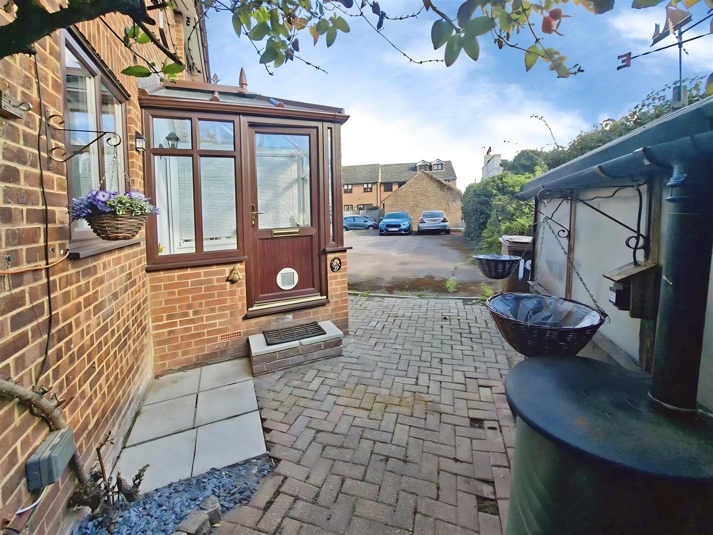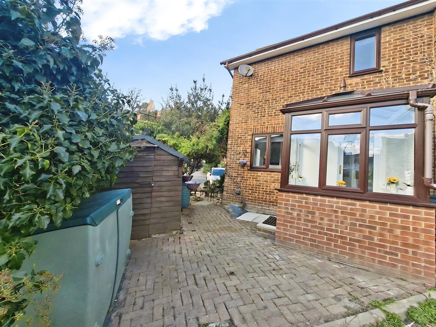 The house is set back from the Close with a lovely private front garden area with established plants and treeS, and is mainly laid to shingle. To the side there is a further good size private paved patio area with storage shed, providing a lovely space for outdoor dining and relaxation during the summer months.