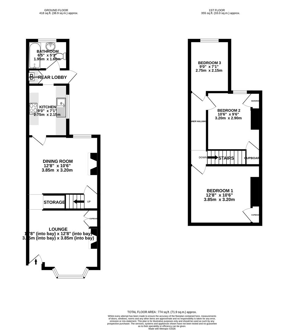The layout briefly comprises of: Entrance into lounge with cloakroom storage to rear, through to the dining room with doorway access to stairs up to first floor, and through to kitchen, rear lobby, and bathroom; The upstairs landing gives access to three good size bedrooms comprising of two doubles and one single.