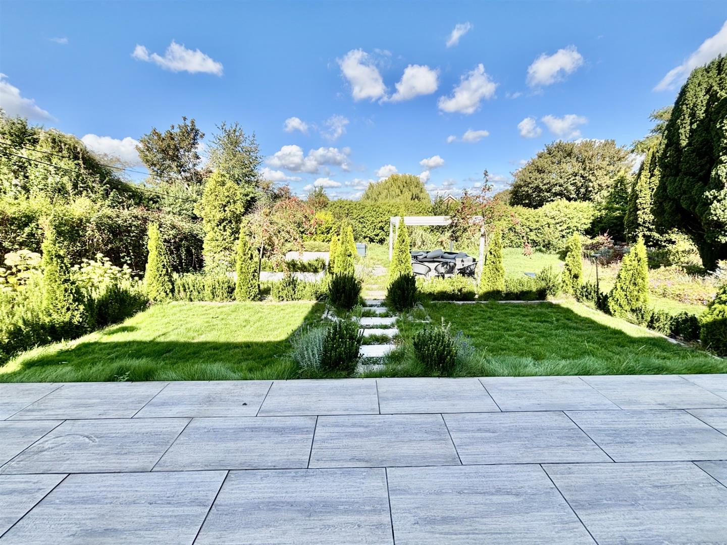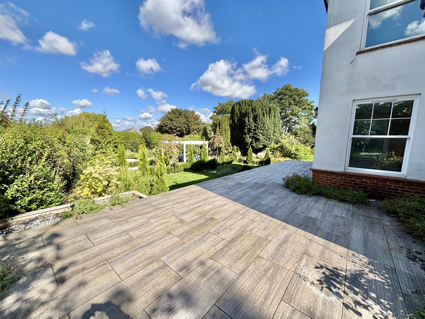 Beautiful established gardens of 3/4 of an acre, wrap around this substantial family home, with large paved porcelain patio to rear and side, leading down to expansive lawn garden areas, large storage shed to one corner, a lovely paved pergola area with sunken seating to side, all set in a private and peaceful setting with mature shrubs, plants and trees.