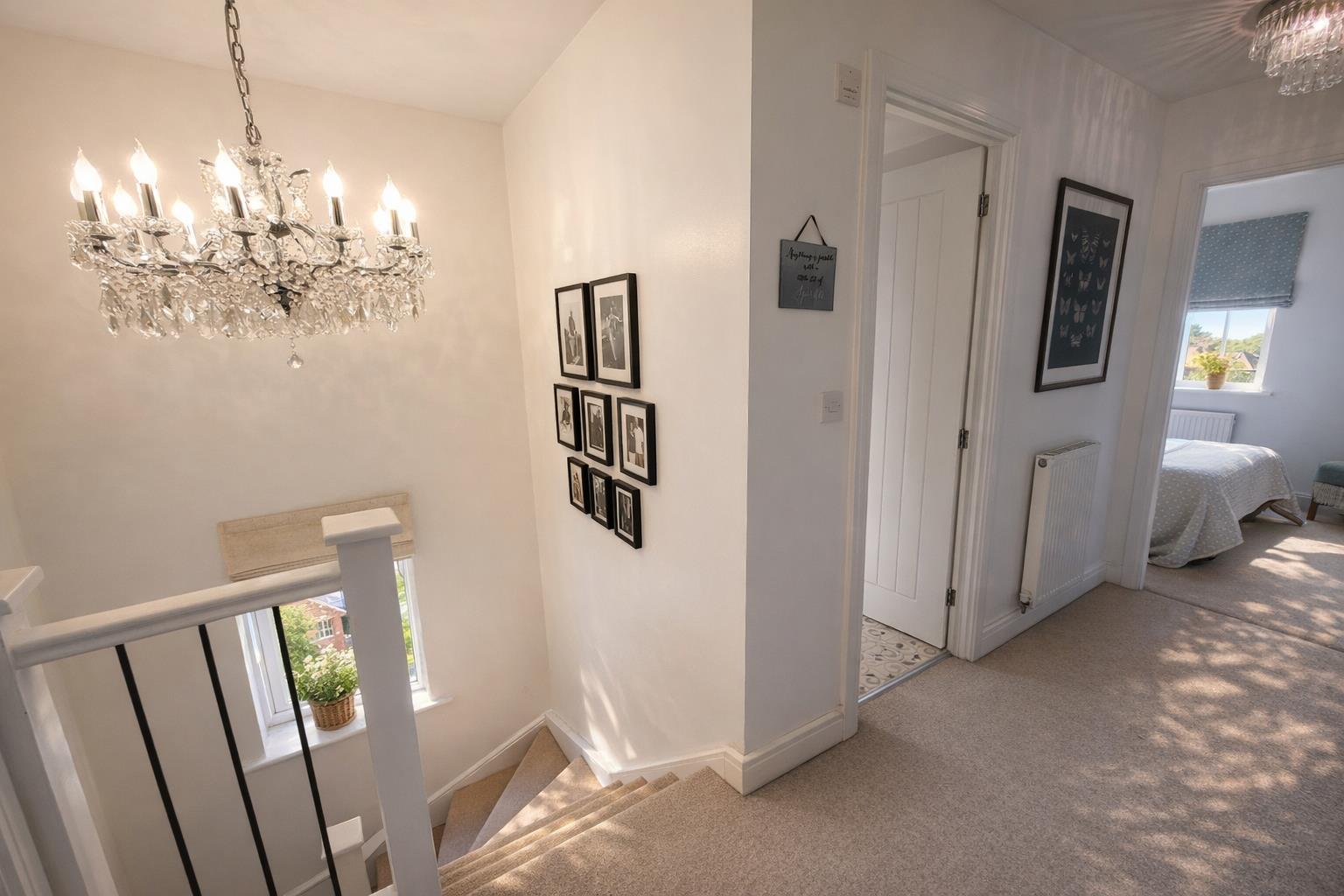 Neutrally decorated and carpeted providing access to bedrooms and bathroom.