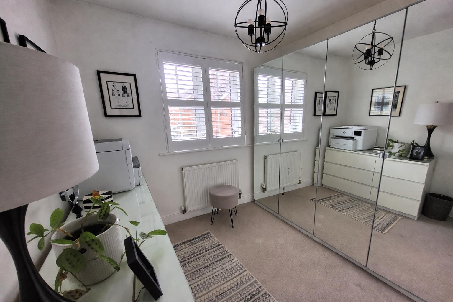 Carpeted bedroom to the front of the property with wardrobes to remain. Ideal dressing room or nursery.