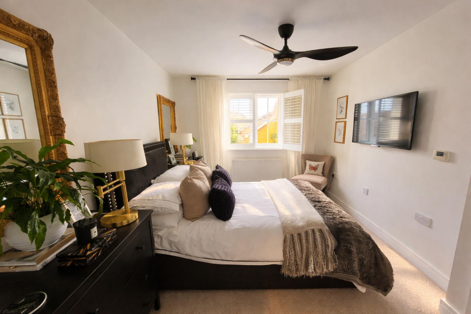 Carpeted and neutrally decorated, fitted shutter to window, access to en-suite shower room.