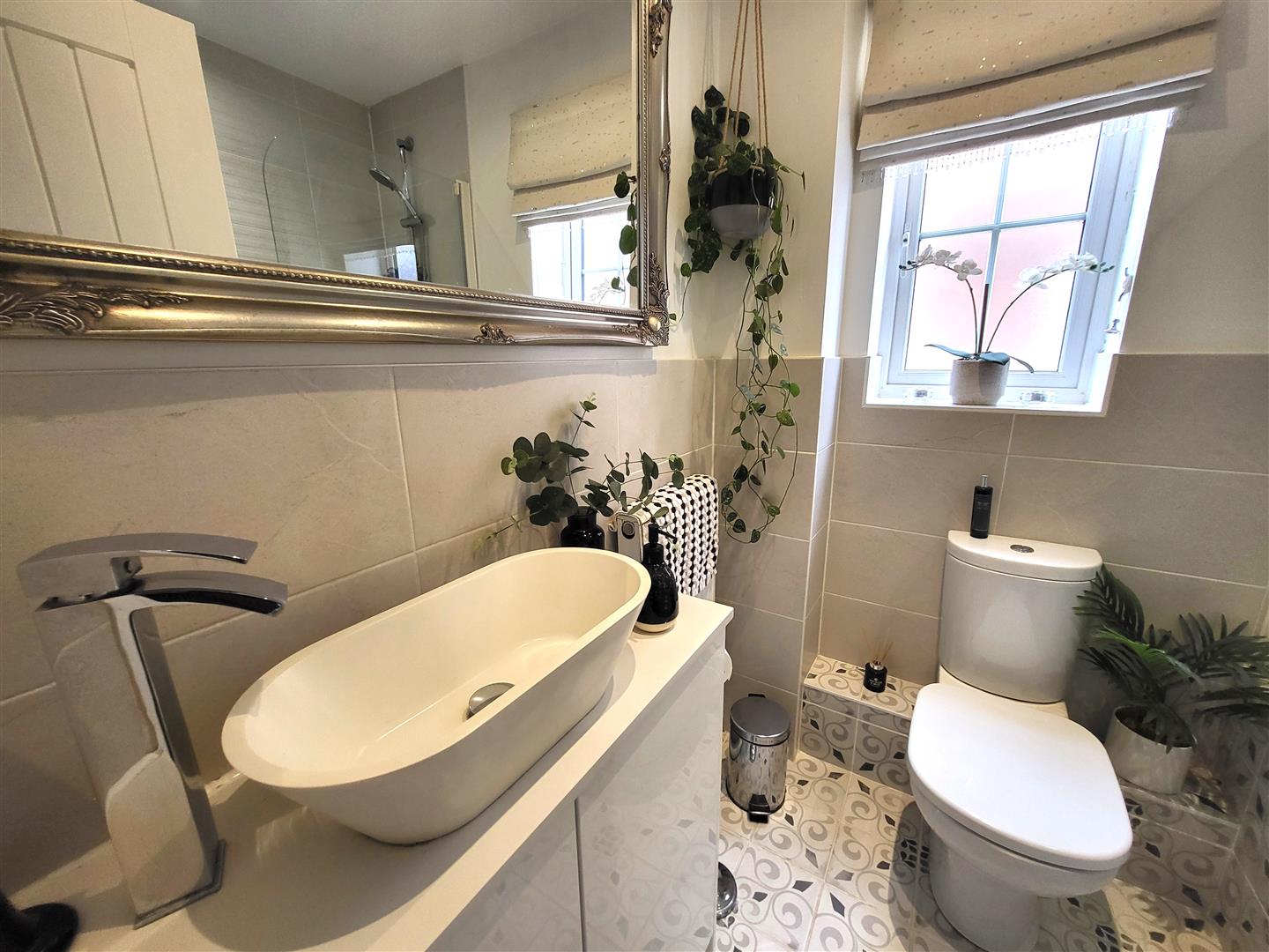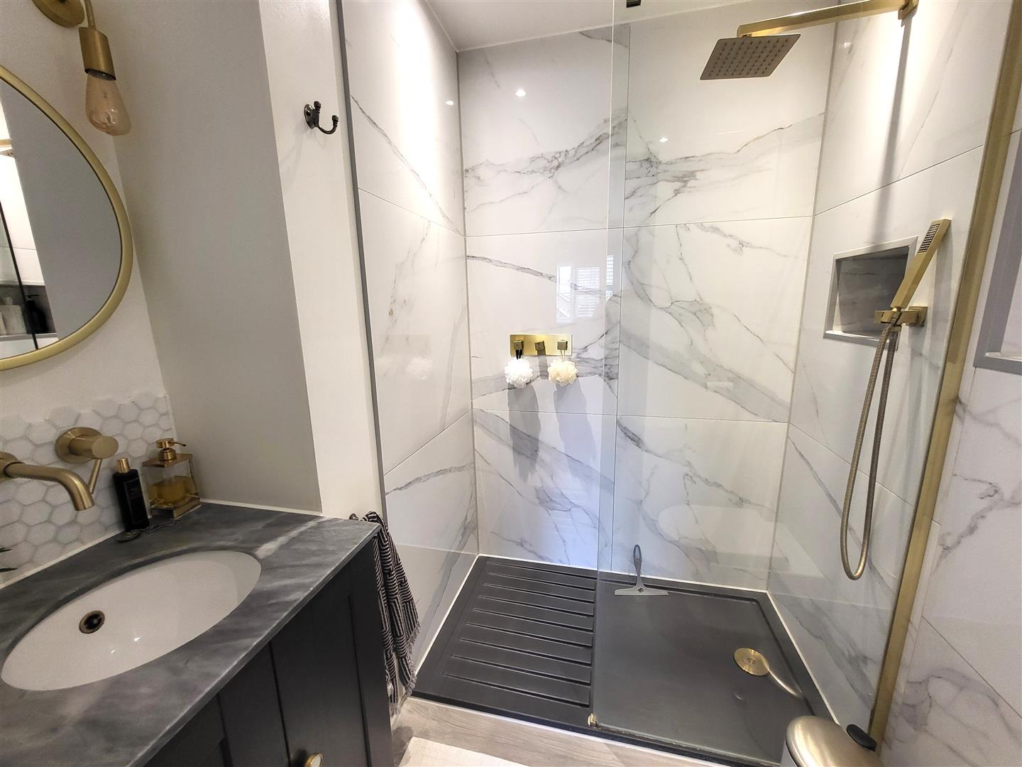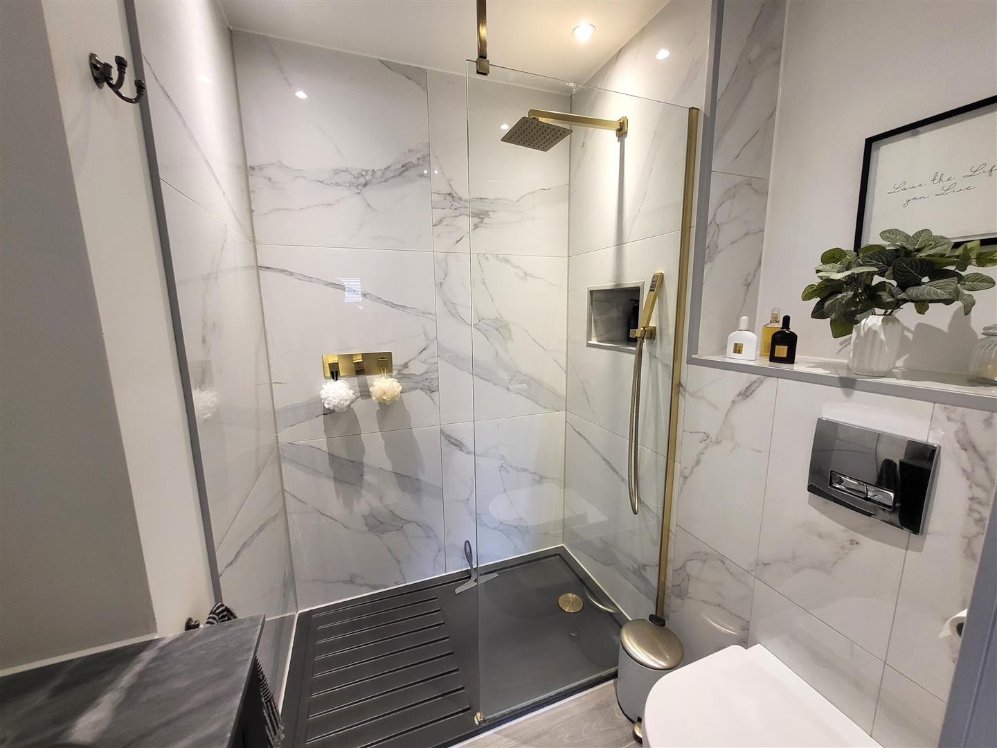 To master bedroom, includes shower cubicle, vanity unit, toilet.