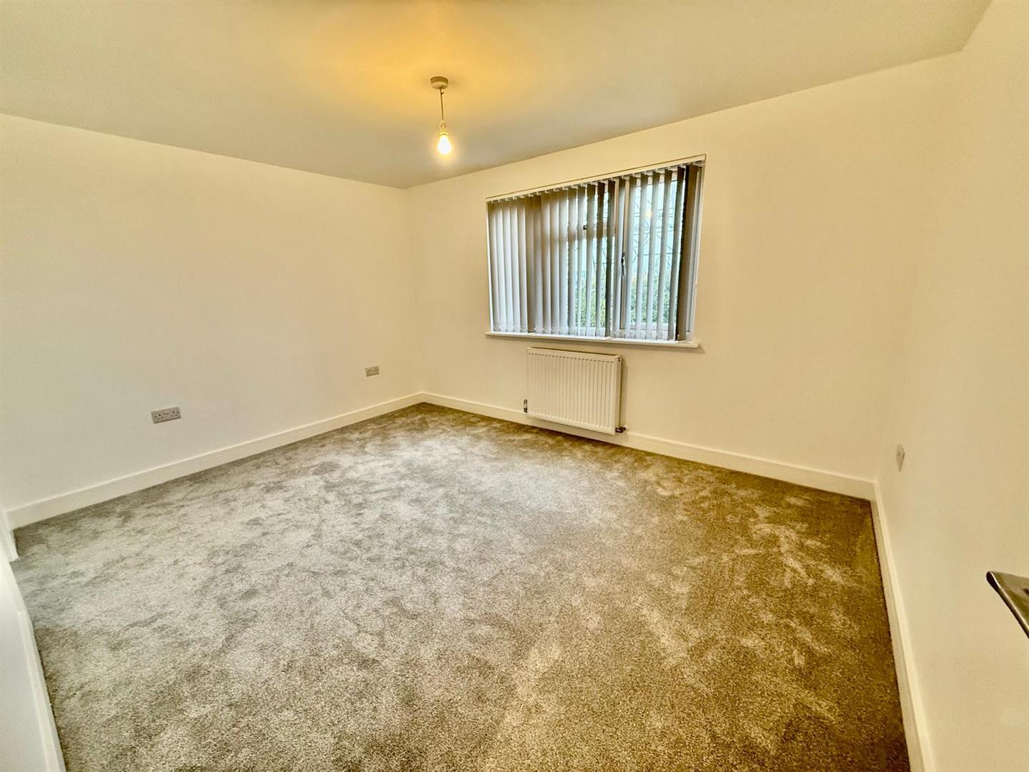 Double bedroom, grey carpet and white walls, radiator, window to front of property.