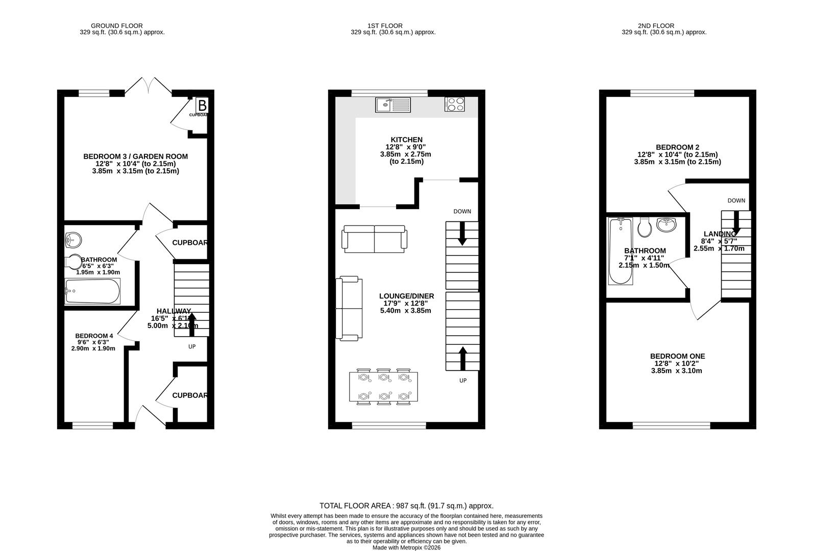 The layout briefly comprises of: Spacious hallway with two storage cupboards giving access to single bedroom four, bathroom one, and double bedroom three/garden room with patio doors out to garden; stairs lead up to the first floor comprising of a large open-plan lounge/diner, open doorway into the spacious kitchen, and further stairs up to the second floor; The second floor landing gives access to two further double bedrooms and bathroom two.