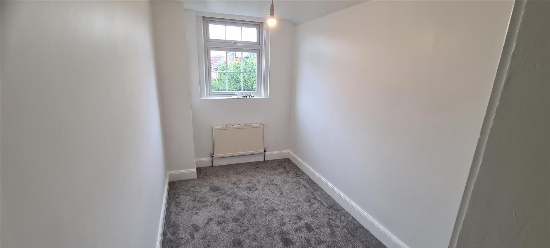 Single bedroom with window to rear, neutral carpet and decor.